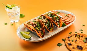 Pour donner une touche amusante à la soirée tacos, nos patates douces farcies aux tacos transforment des patates douces cuites au four en tortillas de patates douces faites maison, remplies d’un mélange de bœuf assaisonné et de toutes les garnitures classiques pour tacos. La purée de patates douces est mélangée à de la farine pour fabriquer les tortillas, ce qui leur confère une douceur et un moelleux naturels ; elles sont parfaites pour un dîner décontracté de la Saint-Valentin.
