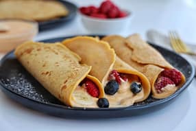 Si vous aimez les desserts, nos crêpes à la patate douce et à la crème de patate douce sont faites pour vous. La purée de patate douce est mélangée à la pâte, ce qui donne aux crêpes une saveur naturellement sucrée et une texture moelleuse qui les rend parfaites pour une occasion spéciale.